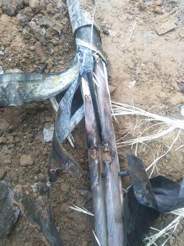 3、敷設不規范:直埋線敷設時,要有嚴格的工藝要求。但由于農網改造工作量大面廣、人員緊缺,部分地區在直埋線施工中,往往存在這樣或那樣的不規范施工行為。例如地溝回填時不用細紗土,用含有碎石的土塊直接回填,極易導致損傷絕緣層。或者開溝深度過淺,如深度小于0.6m,極易在地表面重壓下造成斷線或接地故障。在高寒地區,如敷設深度小于凍土層厚度,更容易因熱脹冷縮造成斷線故障。