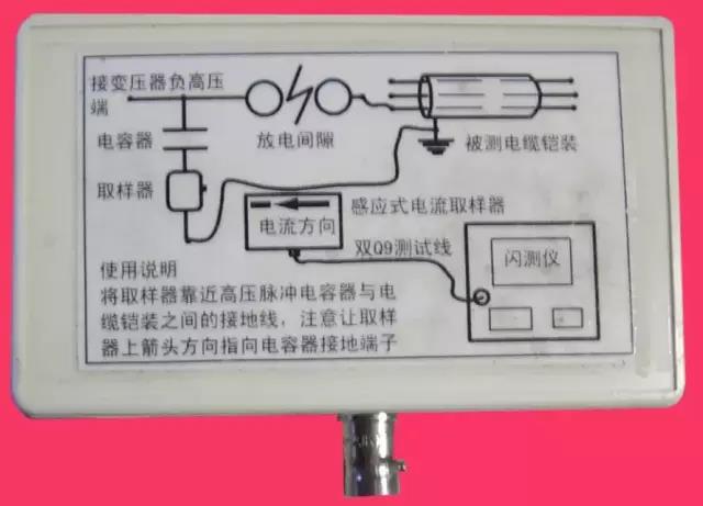 圖6是一款電纜故障閃絡測試儀說明書中,使用串接式電流取樣器時,沖閃法接線圖: