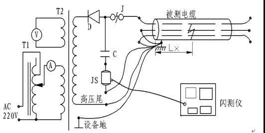 圖12 高壓閃絡法電纜接線示意圖