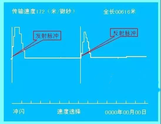 然后,用故障相對鎧裝測試,即A-地,脈沖法測試波形如圖2所示:
